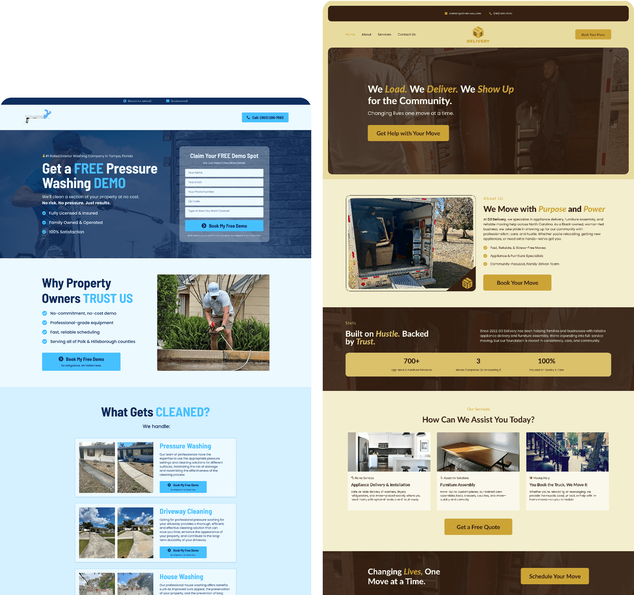 We build everything under one roof, your website, landing pages, Google profile, and socials all get a consistent look and message. So when people check you out online, they trust you instantly.
